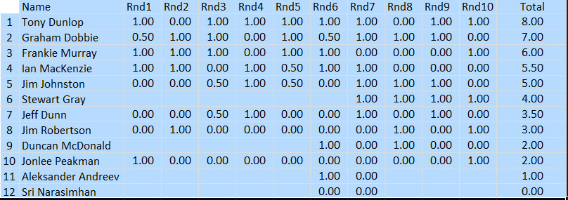 Final Standings (after ten rounds) 13/06/19